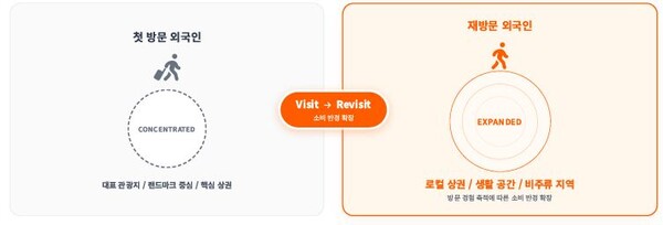 방문 횟수가 늘어날수록 외국인의 소비 성향은 탐색형에서 루틴형으로 진화하고 있는 것으로 나타났다. 3회 이상 한국을 찾은 이들은 관광지 입장료 결제 비중을 줄였다. 그러나 편의점 간식이나 동네 식당 등 ‘일상적 경험’을 반복하기 위한 소비를 위해선 지갑을 열었다. 이들에게 한국은 ‘관광객으로서 새로운 것을 구경하러 오는 곳’이 아닌 ‘이웃처럼 좋았던 장소에서의 생활을 잠깐 다시 살아보려고 오는 곳’인 것이다. 이는 인바운드 시장이 단발성 관광객 유치에 만족하지 않고, 외국에서 방문하는 단골 확보에 집중해야 함을 시사한다.